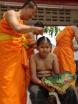 สามเณรไทย : Thai Samaneras : To promote Buddhism. Children can return father – mothers and parents. Children learn and can help others and discipline. Today, Thai samameras are insufficient or reduced. Reasons: Education (การศึกษา) : Inconsistent between education of Buddhist monks system with ordinary education system. Standard (มาตรฐาน) : Some Wat have low standard control properly and correctly of Monks and Samameras. Money of education (เงินทุนการศึกษา) : Not have money or little money for education for Thai samameras. Request scholarship donations from charitable organizations. Family (ครอบครัว) : Family are wealth not popular children are Thai samameras. Thai samameras are children from families in rural areas (Farmers , Poor ) and children from parents die or Family have problems. Promotion Parents of children are Thai samameras during summer vacation ( March to April) “ Or - Ra - Han Summer”. Wish our king and wish Princess Maha Chakri Sirindhorn birthday April 2